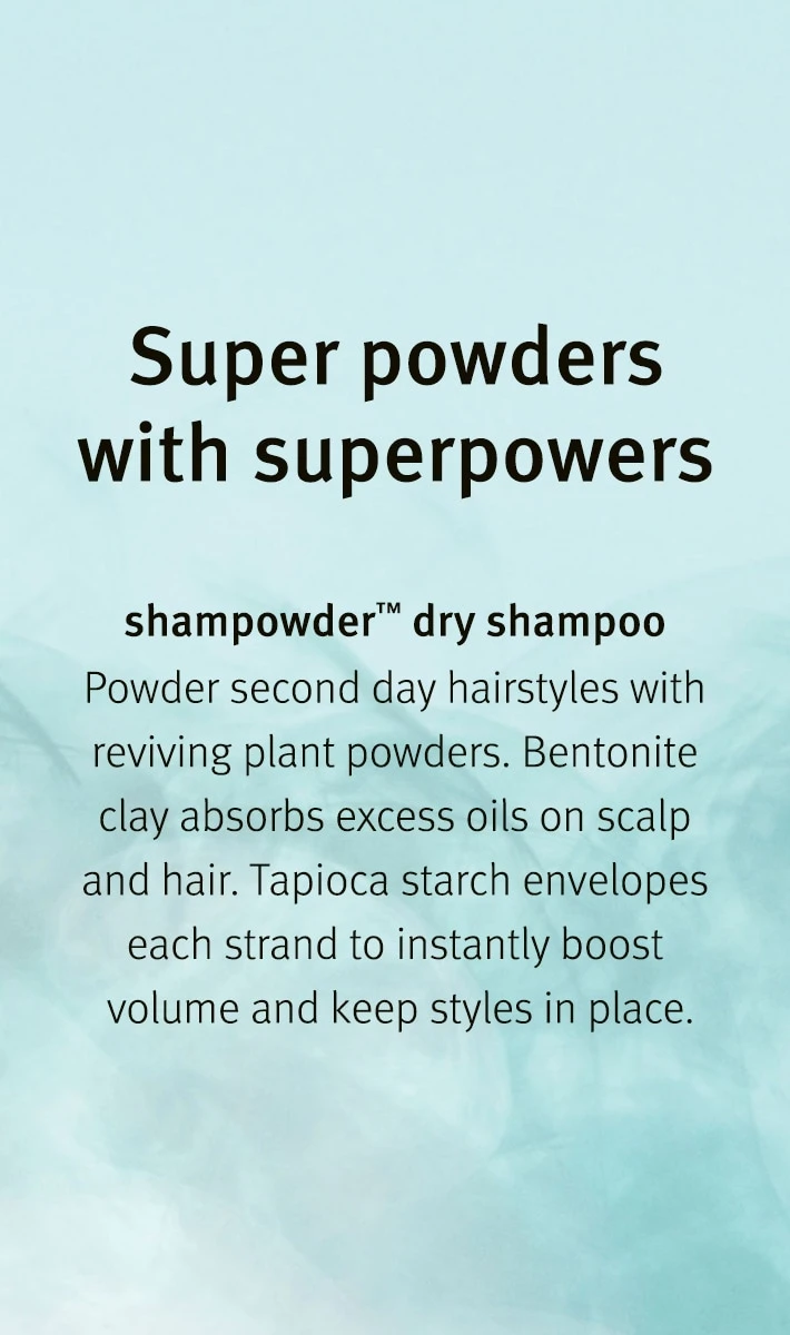 Conquer second day hairstyles. shampureâ„¢ dry shampoo is now shampowderâ„¢ dry shampoo. It absorbs excess oil, impurities and sweat with powerful plant powders. Instantly adds volume and texture to refresh style.